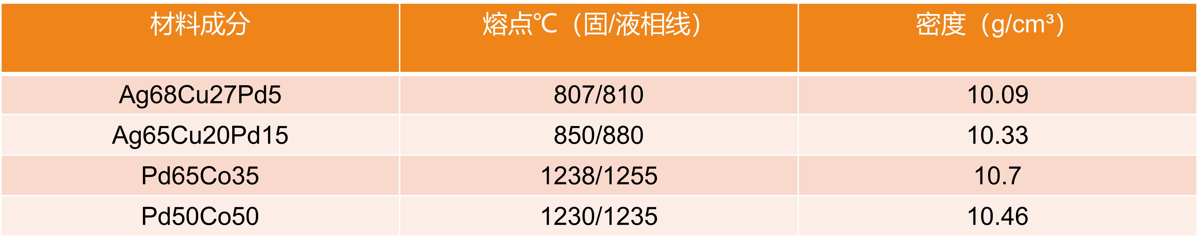 栢林提供的鈀基焊料,主要為Ag-Cu-Pd系列、Pd-Co系列的焊料。