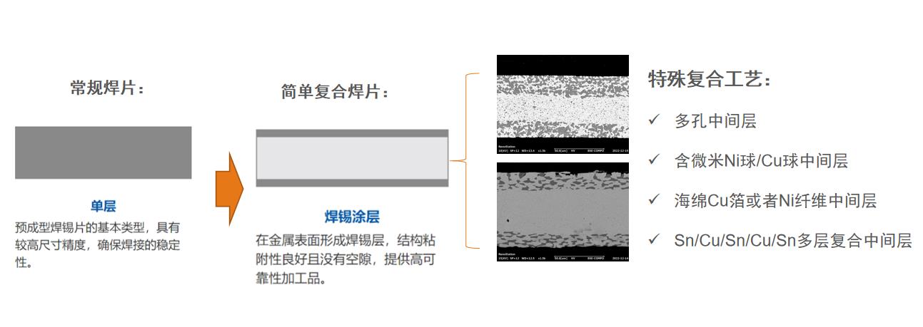 簡(jiǎn)介:在高熔點(diǎn)金屬或焊料的兩側(cè)或單側(cè)形成一定厚度的低熔點(diǎn)焊料層,作為“中間層”,結(jié)構(gòu)粘附性好且沒(méi)有空隙,增強(qiáng)焊縫性能,提高可靠性、連接性能。